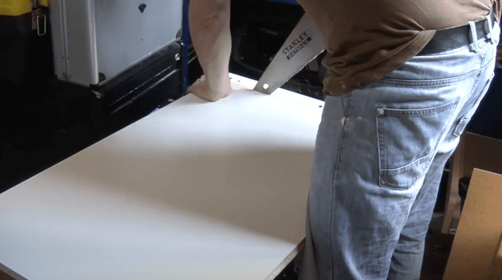 Rather than building the carcasses, like I did before, I’ve decided to build them as I fit them. Once the side panel was fitted, I carefully measured the distance between the wall and the side panel at the top and at the bottom front and back carefully and then cut those two sides to fit.