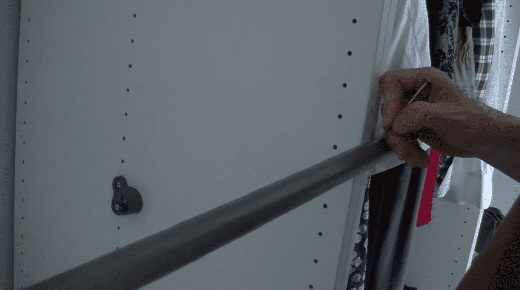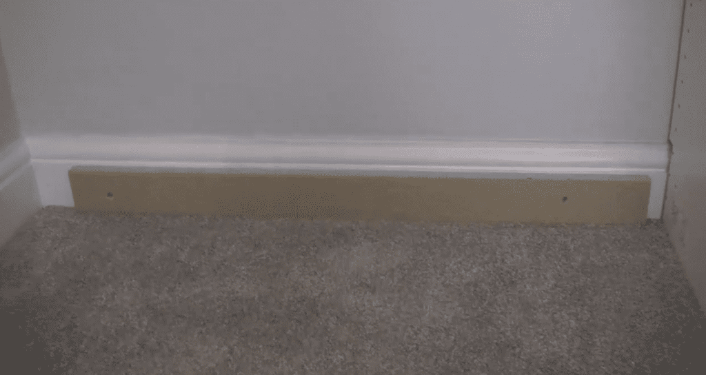 So when fitting the hanging rods, one of them was a little tight and I ended up damaging the wall. The plastic fittings have a little bit of tolerance so I think if anyone else does this don’t try to force the rod in. However the big one was that the chip board supporting a piece of wood needs to be screwed to the skirting rather than trying to put it into the actual base, as you would normally do if you were building the unit as a whole.